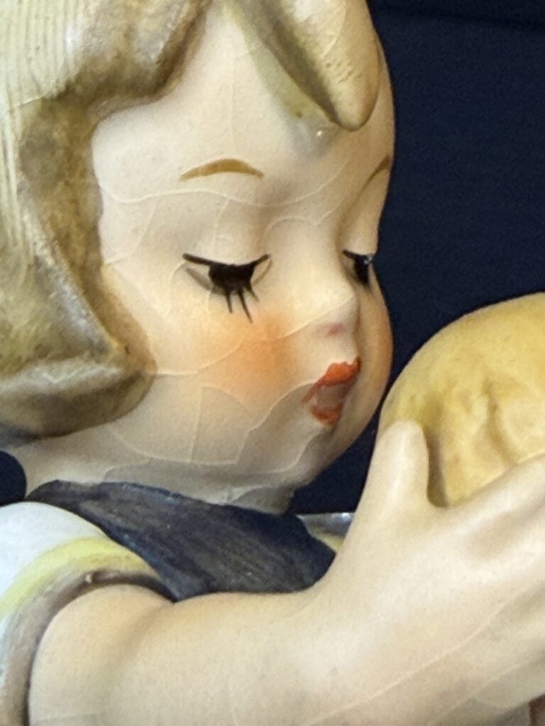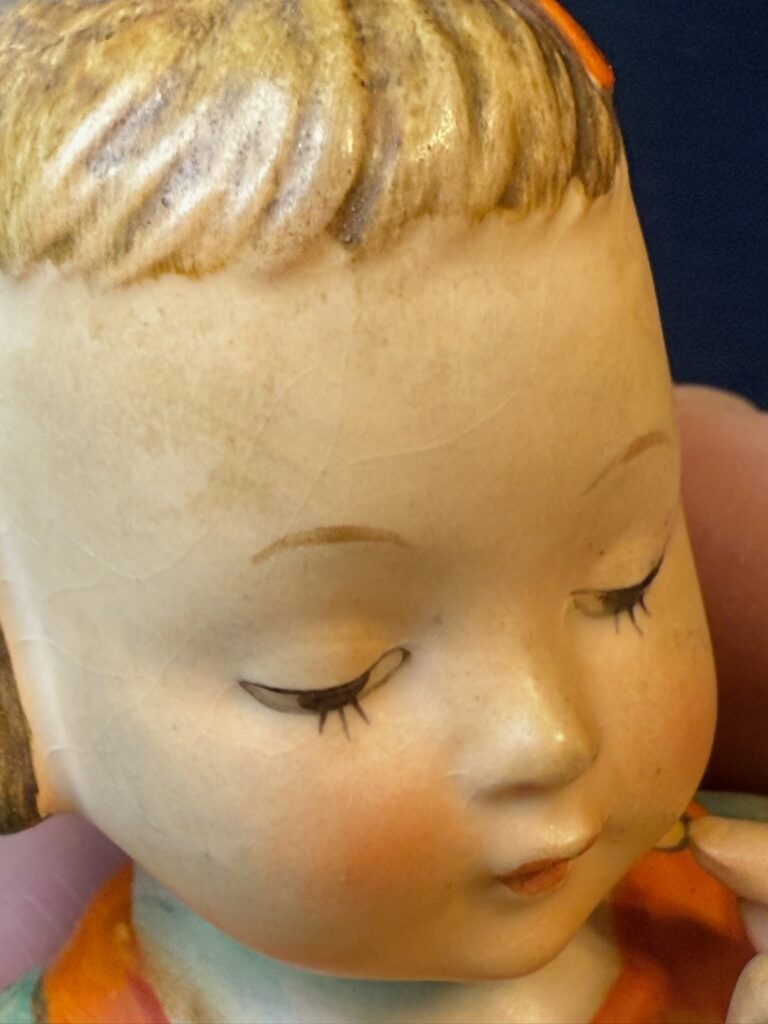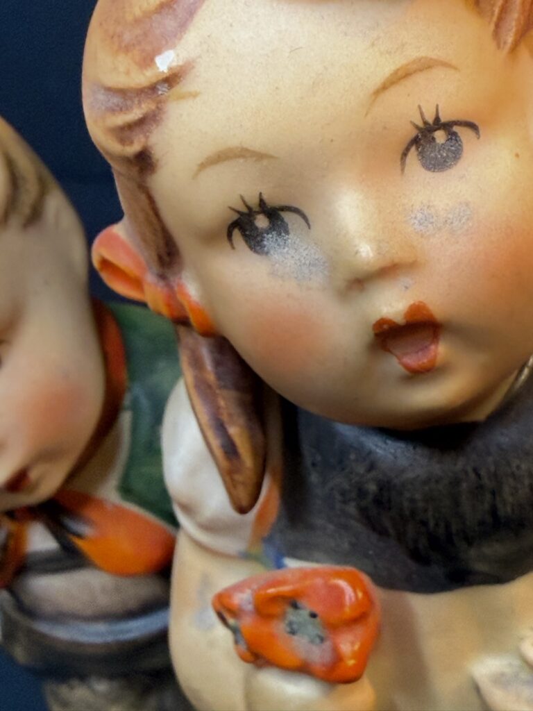 It is a buyer’s market for Hummels right now, which means collectors have the luxury of choice. When someone can compare several examples of the same figurine, they will almost always choose the one with the cleanest glaze, the most intact details, the brightest paint, and no damage at all.