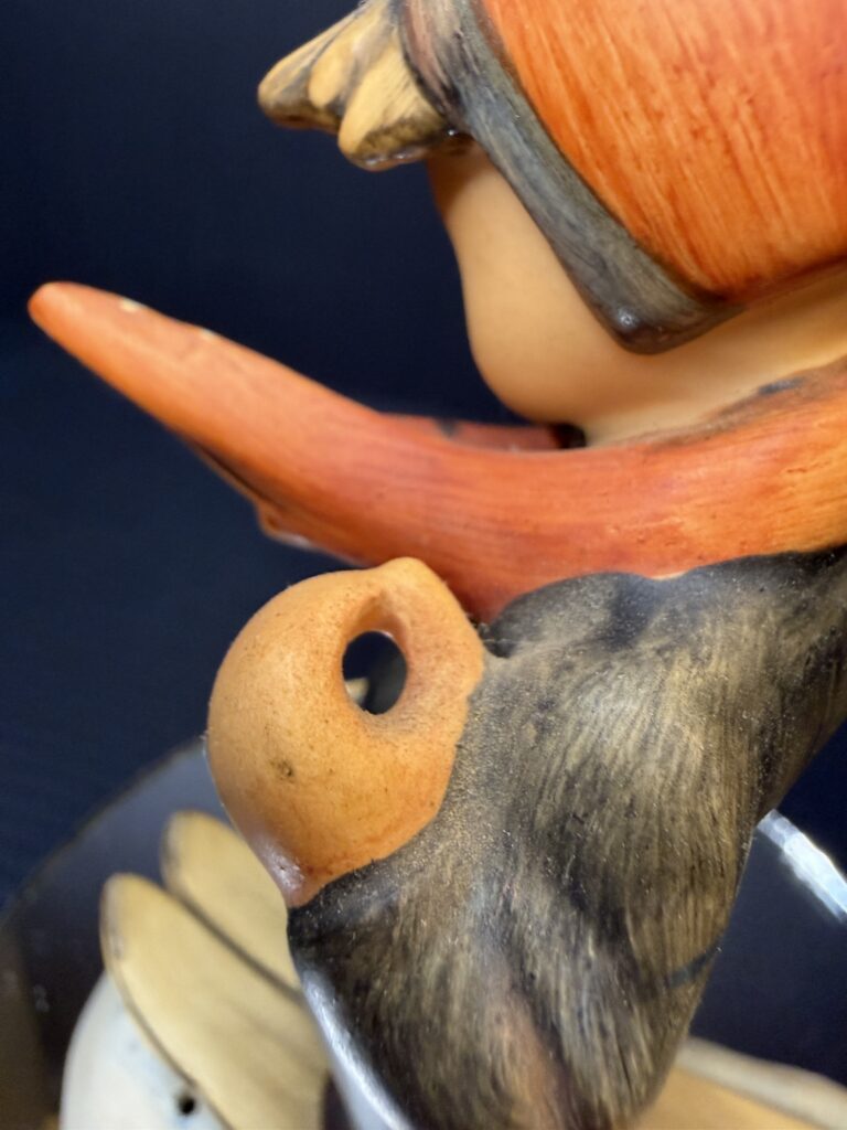 Many people believe their figurines are in perfect condition, yet the photos shown here are all examples of pieces I received from sellers who described them that way. High quality lighting and close photography reveal issues that are easy to miss at home. Below are some of the most common flaws I see when evaluating Hummels: